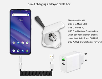 ALL IN 1 USB CABLE BOX With 3 ADAPTERS 2 ANGLE'S BRACKETS FOR ALL USB A USB C TRAVEL CHARGERS POWR BANKS SMARTPHONES NOTEBOOK MACBOOK CHARGING SYNC